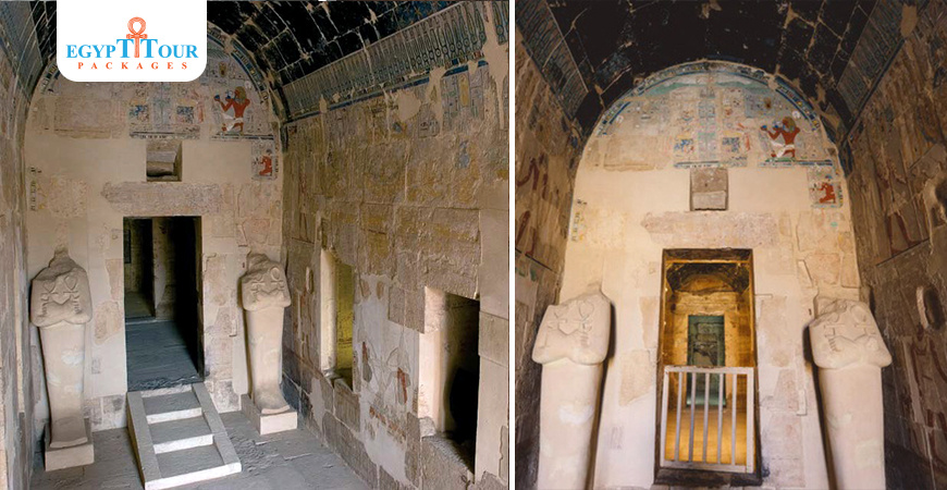 مقصورة ثانية لأنوبيس، يضم منتصف الجدار الشمالي لقاعة المذبح السابقة مدخلاً يؤدي إلى قاعة مستطيلة تمتد من الجنوب إلى الشمال وتضم في جدارها الغربي مدخلاً يؤدي إلى قاعة أخرى، ويمثل المبنى مقصورة ثانية لأنوبيس. محراب آمون، يوجد مبنى شمال فناء الأعمدة، يؤدي إلى قاعة مستطيلة تمتد من الجنوب إلى الشمال، تمثل حجرة آمون.
