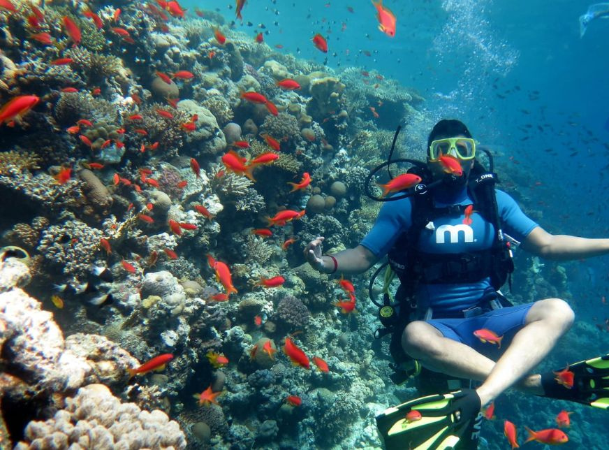 Das Meer um Hurghada bietet einige der besten Korallenriff-Tauchplätze der Welt, auf denen man viele farbenprächtige Fischarten beobachten kann, darunter den Rotmeer-Clownfisch, den Kaiserfisch, den Picasso-Drückerfisch und die Muräne.