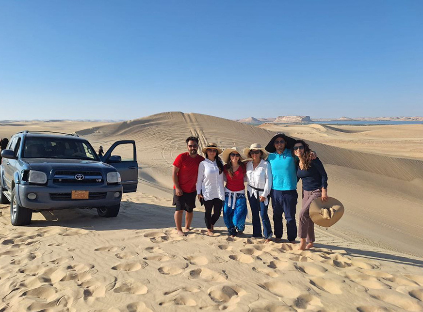 Nach dem Mittagessen entdecken Sie die Oase Bahariya, die Palmen- und Olivenfelder, Gebel Maghrafa, wo 1914 am Fuße des Distrikts Gebel der größte Diansour (Stromers Gezeitenriese) aller Zeiten entdeckt wurde. Genießen Sie den Al-Marun-See, den größten Salzsee in der Oase Bahariya, den Sonnenuntergang vom Gipfel des Englischen Berges (Gebel Al Ingleez). Der Blick von oben bietet ein Panorama auf den nördlichen Teil der Oase.