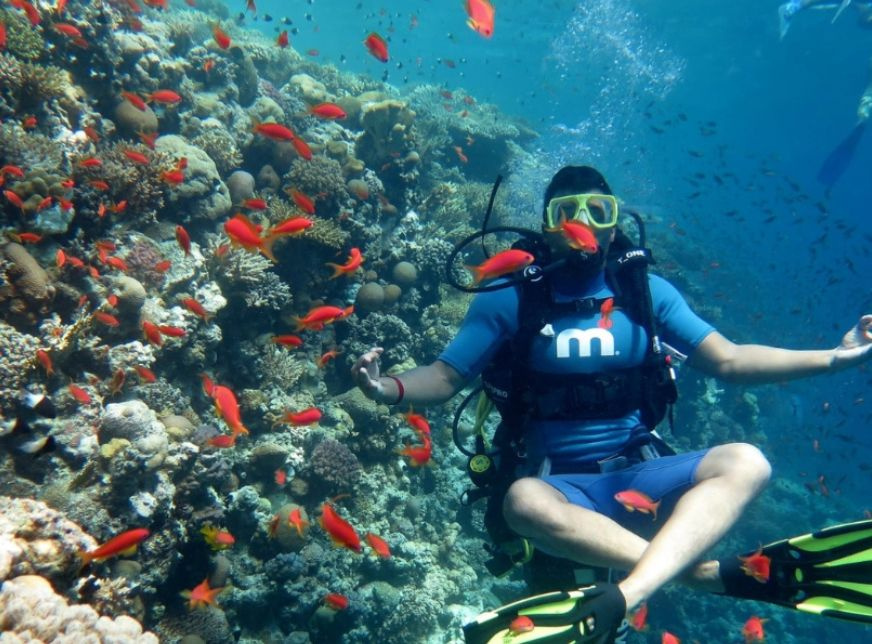 El mar alrededor de Hurghada ofrece algunos de los mejores lugares de buceo en arrecifes de coral del mundo, permitiendo ver muchas especies de peces coloridos, incluido el pez payaso del Mar Rojo, el pez ángel emperador, el pez ballesta Picasso y las morenas.