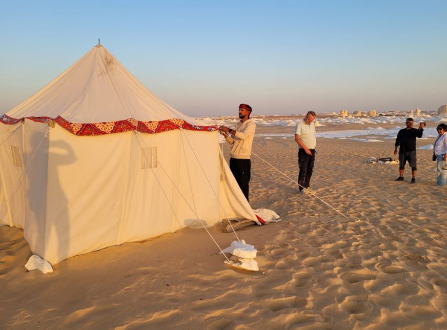 15h00 Arrivée dans la vallée d'Agabat, au cœur du désert blanc. Il faut y être pour ressentir la beauté surnaturelle du lieu. Il y a des millions d'années, cet endroit était sous la mer. Au fil des ans, des formations rocheuses uniques de calcaire, de craie (et peut-être de sable) se sont développées.