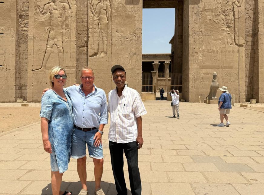 Site de Haute-Égypte dominé par un grand temple bien préservé, dédié au dieu faucon Horus, la construction du temple ptolémaïque d'Horus, qui a été fondé sur le site d'un temple beaucoup plus ancien, daté de la période entre les règnes de Ptolémée III (246 av. J.-C.), les descriptions sur les murs incluent le mythe de la lutte d'Horus et de Seth (probablement joué chaque année comme un drame religieux).