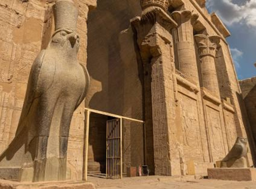 Sito dell'Alto Egitto dominato da un grande tempio ben conservato, dedicato al dio falco Horus. La costruzione del tempio tolemaico di Horus, fondato sul sito di un tempio molto più antico, risalente al periodo tra i regni di Tolomeo III (246 a.C.). Le descrizioni sulle pareti includono il mito della contesa tra Horus e Seth (probabilmente rappresentato ogni anno come dramma religioso).