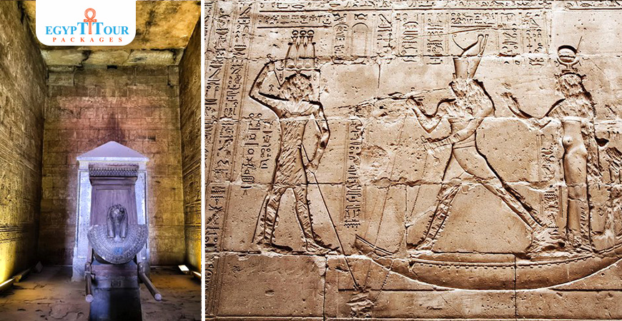 diferă de templele epocii faraonice prin faptul că sunt conservate într-o măsură relativ mare și se disting prin natura numeroaselor lor inscripții, desene și scene care acoperă zidurile lor. Textele de pe pereții acestor două temple se caracterizează prin faptul că sunt lungi și acoperă complet pereții camerelor lor, iar ceea ce atrage atenția este Pe pereții fiecărei încăperi, sală sau vestibul a clădirilor acestor două temple, numele său distinctiv. s-a menționat clar și s-a menționat și scopul pentru care a fost alocată această sală sau încăpere. Templul lui Edfu sau Templul lui Horus din orașul Edfu este al doilea templu ca mărime din Egiptul antic, după Templul lui Karnak. Este considerat unul dintre cele mai complete temple antice egiptene situate în orașul Edfu. Construcția sa a durat aproximativ 180 de ani de la domnia regelui Ptolemeu al III-lea până când construcția sa a fost finalizată în timpul domniei regelui Ptolemeu al XII-lea.