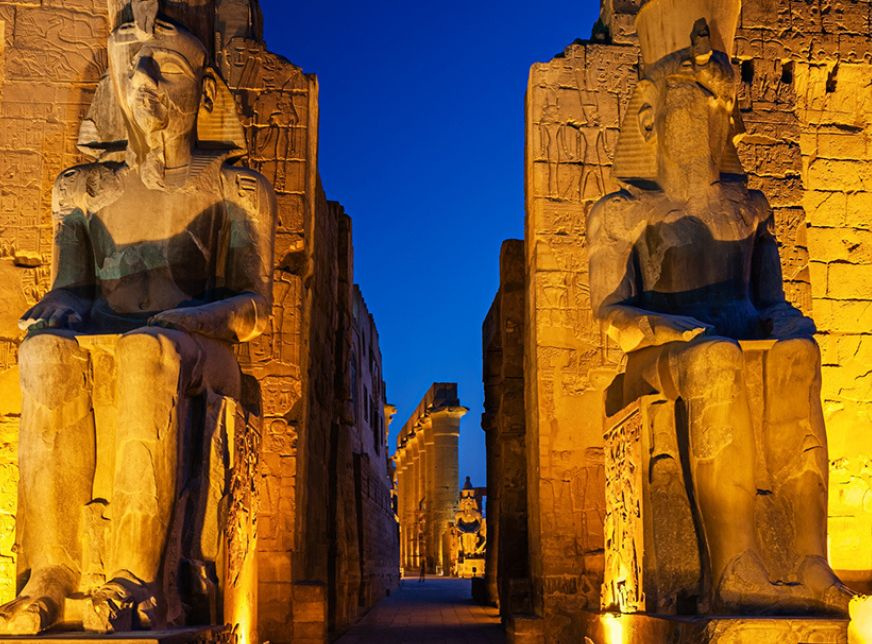 On the Evening you can enjoy An Optional Tour Sound and Light Show at Karnak: The show starts with a historical introduction covering the birth of the great city of Thebes and erection of the Karnak Temple. The show narrates the glorious achievements of some great Pharaohs as you listen to a magnificent and poetic description of the artistic treasures and great legacy which the