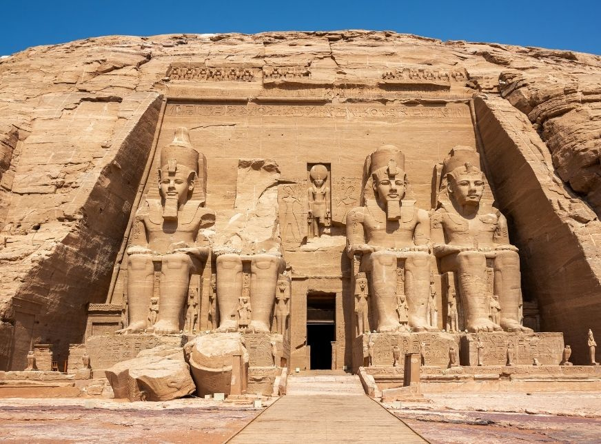 The two temples of Ramses the second and the Queen Nefertari were carved out of the Mountain on the west bank of the Nile between 1274 and 1244 B.c, The Great Temple was dedicated to Ramses the second, Ra-Harakhty, Amun Ra, and Ptah, with 4 Colossal statues, The second temple was dedicated to The Queen Nefertari and Goddess Hathor, the two temples were dismantled stone by stone and rebuilt on higher ground, The preservation of the two temples of Abu Simbel must Rank as the greatest Achievement of the Unesco.