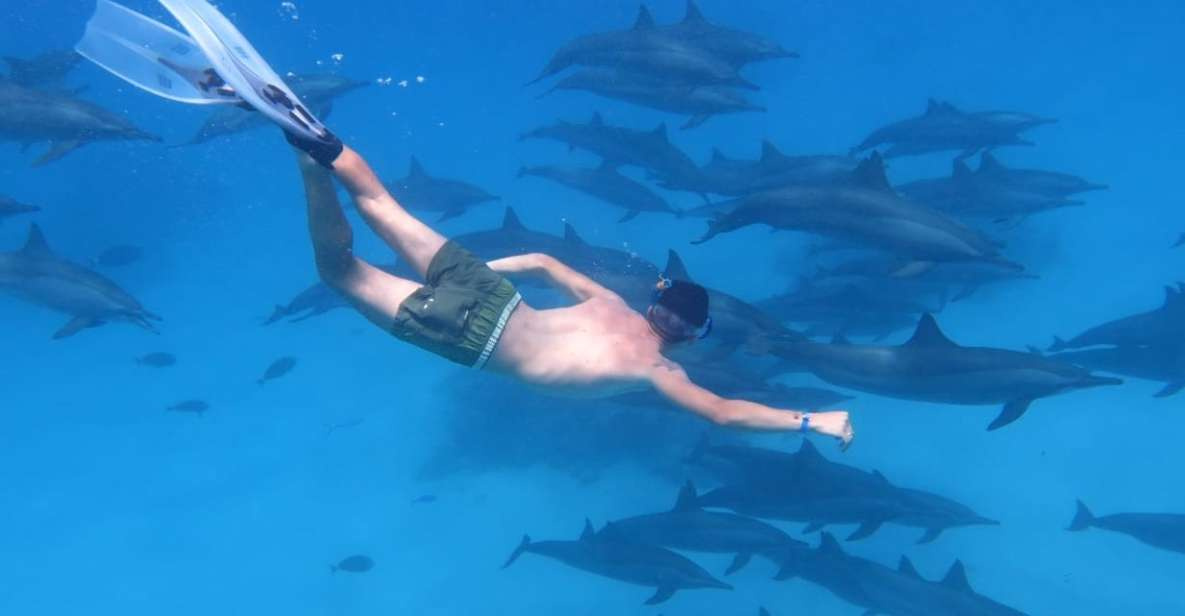 السباحة مع الدلافين (01.30 ساعة) لمدة ساعة ونصف تقريبًا، سترقص مجموعة من 60 إلى 80 دولفينًا أمام عينيك حيث يمكنك أن تشعر بالحرية في اللعب مع هذه الثدييات المذهلة. هذه المنطقة مليئة بالدلافين والثدييات البحرية التي تعتبر هذه المنطقة موطنها. توجد مدرسة ضخمة للدلافين الدوارة في شعاب ساتيه. إن الإحساس بالسباحة مع هذه الثدييات الجميلة هو تجربة لن تنساها أبدًا. خلال النهار، ستتاح لك فرصة الانضمام إلى الدلافين في البحيرة، وكذلك اكتشاف أنواع مختلفة من الأسماك والشعاب المرجانية الموجودة فقط في البحر الأحمر.