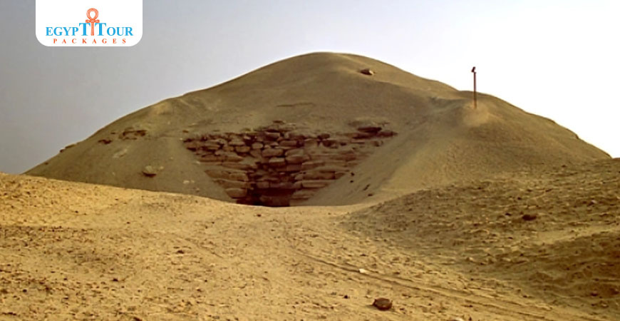 يقع مدخل النصب التذكاري في الجهة الشمالية. يؤدي ممرٌّ منحدرٌ قليلاً، مصنوعٌ من الجرانيت الوردي، من مستوى الأرض إلى حجرة مربعة فوق المحور المركزي للهرم. كما يوجد عمودٌ رأسيٌّ يؤدي إلى حجرة الدفن. وللأسف، يصعب التنقيب الحديث عن حجرة الدفن تحت الأرض بسبب وجود المياه الجوفية التي تغمر الحجرة. كان المدخل مخفيًا بمصلى، وكان في الجزء الخلفي بابٌ وهميٌّ لإخفاء مدخل الممر المنحدر.