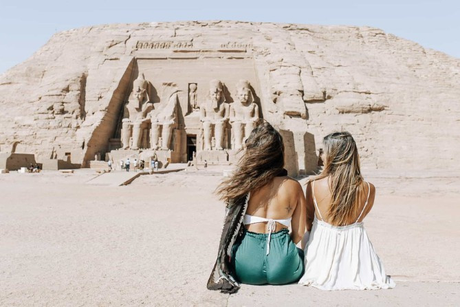 تم نحت معبدي رمسيس الثاني والملكة نفرتاري من الجبل على الضفة الغربية لنهر النيل بين عامي 1274 و 1244 ق.م. وتم تخصيص المعبد الكبير لرمسيس الثاني ورع حاراختي وأمون رع وبتاح مع 4 تماثيل ضخمة. تماثيل. أما المعبد الثاني فقد خصص للملكة نفرتاري والإلهة حتحور، وتم تفكيك المعبدين حجراً حجراً وأعيد بناؤهما على أرض مرتفعة. الحفاظ على معبدي أبو سمبل يجب أن يصنف على أنه أعظم إنجاز لليونسكو.