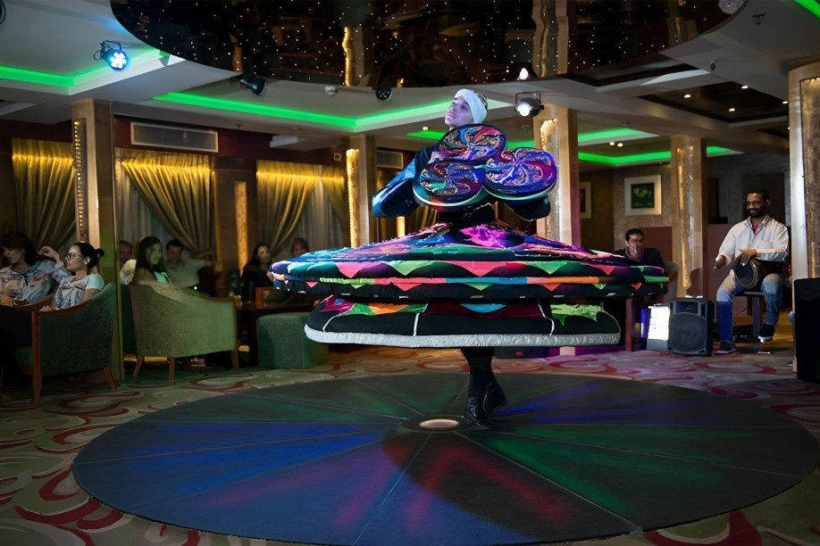 رحلة عشاء بحرية. ليلة لا تنسى على نهر النيل في رحلة بحرية عصرية. استمتع بجمال القاهرة ليلاً على نهر النيل ورقصة الدراويش والموسيقى والفولكلور المصري. بوفيه مفتوح مع مجموعة متنوعة من الأطعمة المصرية والغربية. ستضفي عروض الرحلات إلى مصر الحيوية على إقامتك في القاهرة مع هذه الليلة الرائعة التي تجمع بين التقاليد والثقافة.