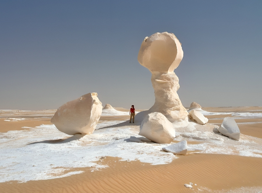 16:30 Erkunden Sie die weiße Wüste – den Nationalpark Weiße Wüste, das bekannteste Wüstenreiseziel Ägyptens.