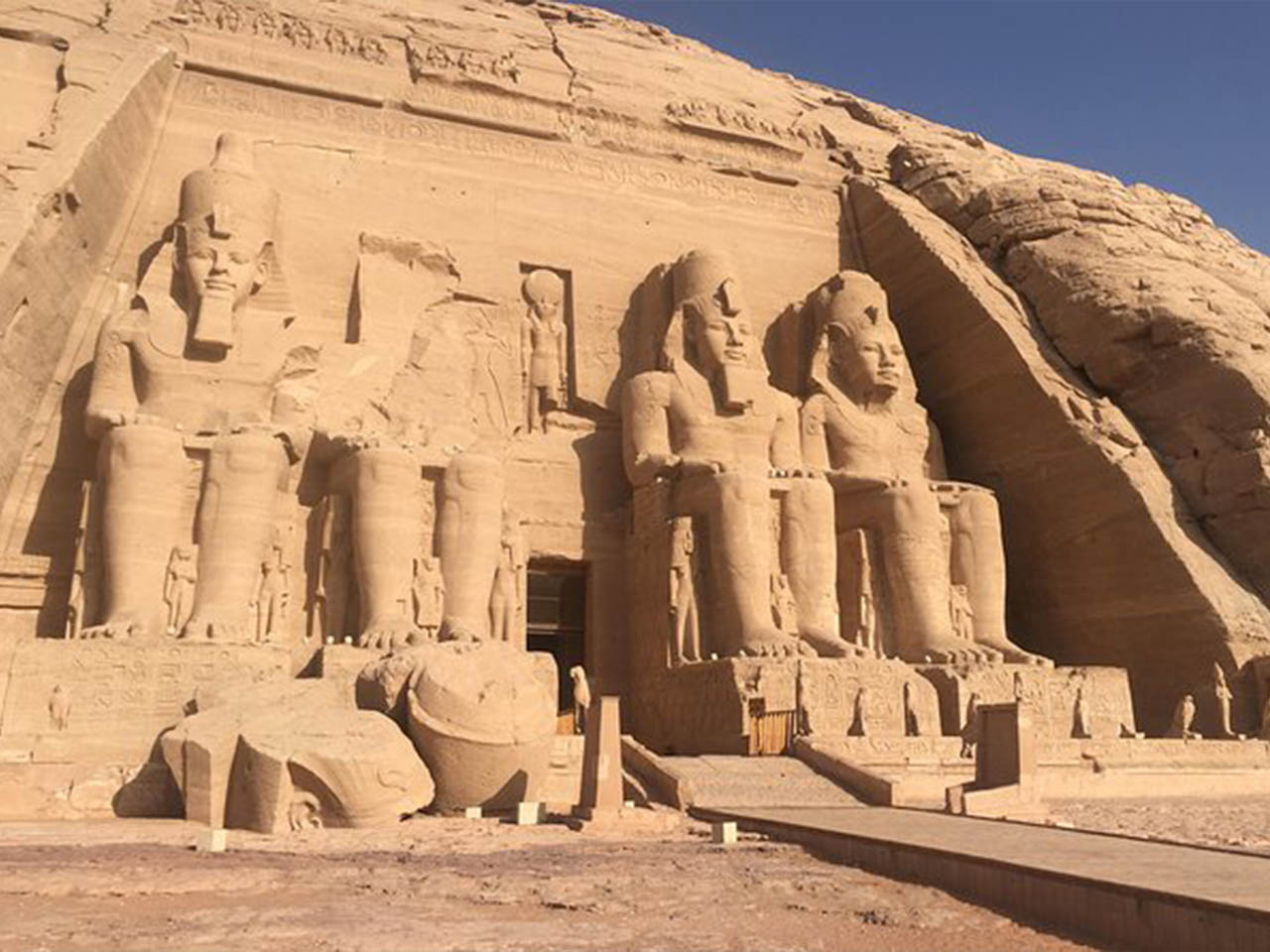 Die beiden Tempel von Ramses II. und der Königin Nefertari wurden zwischen 1274 und 1244 v. Chr. aus dem Berg am Westufer des Nils gehauen. Der Große Tempel war Ramses II., Ra-Harakhty, Amun-Re und Ptah geweiht und enthielt vier Kolossalstatuen. Der zweite Tempel war der Königin Nefertari und der Göttin Hathor gewidmet. Beide Tempel wurden Stein für Stein abgetragen und auf höherem Gelände wieder aufgebaut. Die Erhaltung der beiden Tempel von Abu Simbel zählt zu den größten Errungenschaften der UNESCO.
