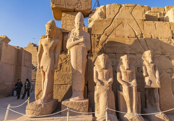 Karnak ist mehr als ein Tempel, es ist ein spektakulärer Komplex aus Heiligtümern, Kiosken, Pylonen und Obelisken, die alle den thebanischen Göttern und dem größeren Ruhm der ägyptischen Pharaonen gewidmet sind. Karnak war der wichtigste Ort für die Verehrung der thebanischen Triade (Amun, Mut und Khonso).