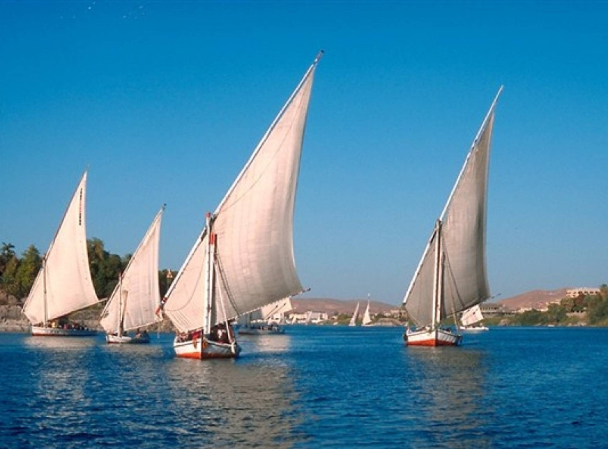 Eine Segelbootfahrt bei Sonnenuntergang in Luxor ist ein wahrhaft besinnliches Erlebnis. Während das Boot den Nil hinabgleitet, tauchen die goldenen Farben der untergehenden Sonne die alten Tempel und die üppigen Ufer in ein warmes Licht. Das ruhige Wasser spiegelt den leuchtenden Himmel wider und schafft so eine malerische Kulisse. Die sanfte Brise und die fernen Geräusche der Stadt tragen zur friedlichen Atmosphäre bei und machen die Fahrt zu einem friedvollen und unvergesslichen Erlebnis.