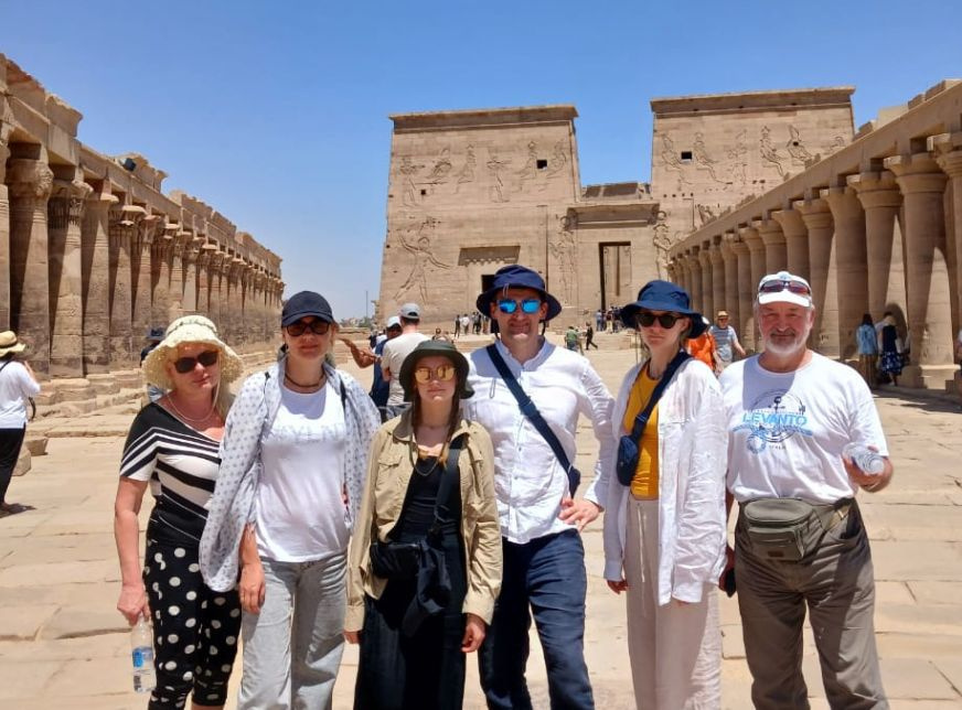Einschiffung und Mittagessen an Bord des Nilkreuzfahrtschiffes, anschließend Besichtigung von Assuan inklusive des Philae-Tempels und einer Felukenfahrt um Elephantine, zum Assuan-Staudamm und zum Unvollendeten Obelisken