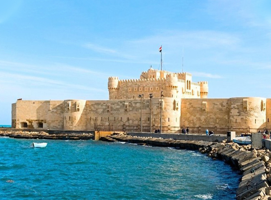 Die Zitadelle wurde im 15. Jahrhundert vom Mamluken-Sultan Qeitbay zum Schutz der Stadt vor den Kreuzfahrern erbaut. Dieses prächtige islamische Bauwerk entstand aus den Ruinen des alten Leuchtturms, der im 3. Jahrhundert v. Chr. von Ptolemaios II. errichtet worden war. Der Leuchtturm wurde 1303 n. Chr. während der Herrschaft des Mamluken-Königs Qeitbay durch ein Erdbeben in Ägypten beschädigt.