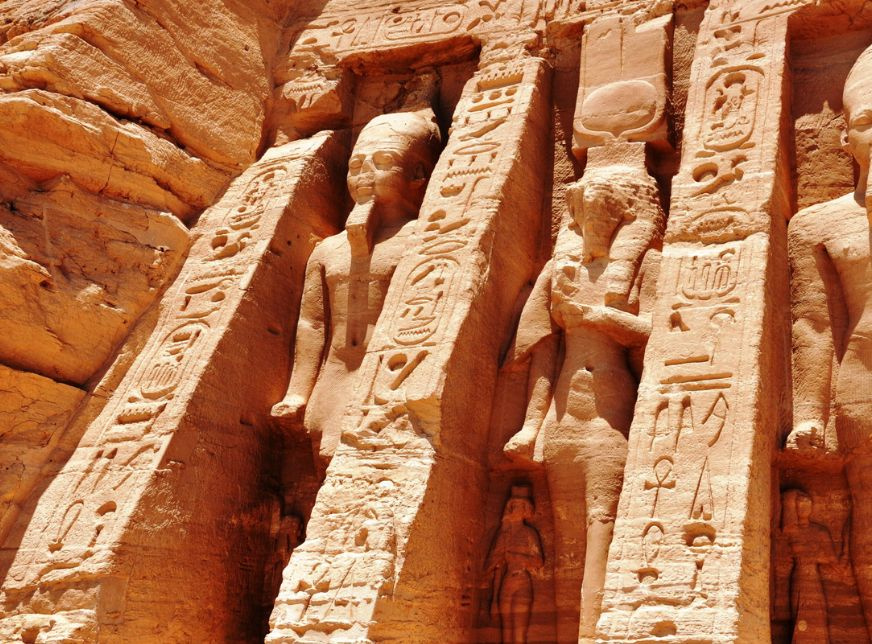 Οι δύο ναοί του Ραμσή του δεύτερου και της βασίλισσας Νεφερτάρι χαράχτηκαν στο βουνό στη δυτική όχθη του Νείλου μεταξύ 1274 και 1244 π.Χ. με 4 κολοσσιαία αγάλματα, ο δεύτερος ναός ήταν αφιερωμένος στη βασίλισσα Νεφερτάρη και τη θεά Χάθορ, οι δύο ναοί διαλύθηκαν πέτρα-πέτρα και ξαναχτίστηκε σε υψηλότερο έδαφος, Η διατήρηση των δύο ναών του Abu Simbel πρέπει να κατατάσσεται ως το μεγαλύτερο επίτευγμα της Unesco
