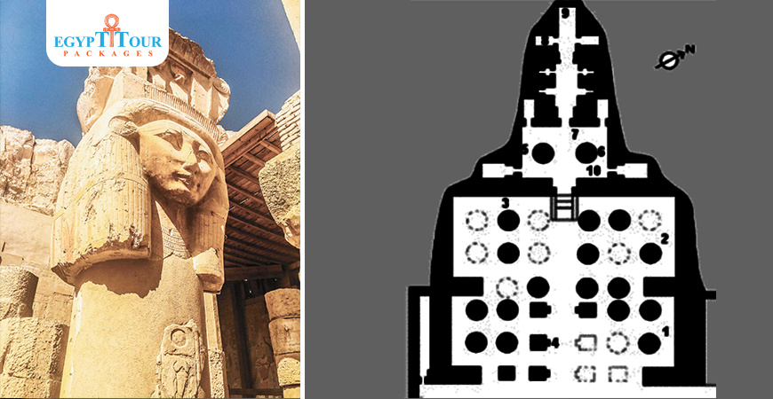 Une seconde cabine pour Anubis, Le milieu du mur nord de l'ancienne salle des autels comprend une entrée qui mène à une salle rectangulaire qui s'étend du sud au nord et comprend dans son mur ouest une entrée qui mène à une autre salle. Le bâtiment représente une seconde cabine pour Anubis. Le sanctuaire d'Amon, Il y a un bâtiment au nord de la cour hypostyle, menant à une salle rectangulaire s'étendant du sud au nord, représentant la chambre d'Amon.