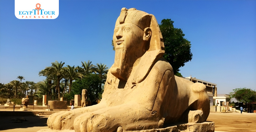 Il moderno edificio del museo ospita un'imponente statua sdraiata sulla schiena. Questa colossale statua in pietra calcarea di Ramses II è una gemella di quella che si trovava al centro di Midan Ramses al Cairo, ma è stata trasferita a Giza. Sebbene sia solo un frammento, la statua misura quasi tredici metri, anche senza le gambe inferiori. In origine era collocata all'esterno del Tempio di Ptah a