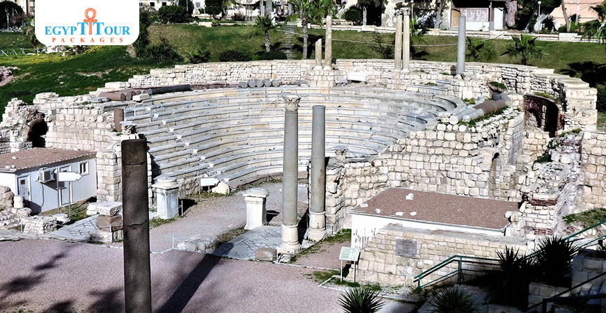 El Teatro Romano está situado en Kom El-Dikka, que es una de las zonas históricas de Alejandría y actualmente pertenece al barrio central de Alejandría.