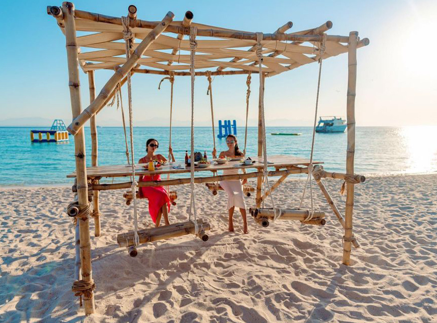 Geniet van de warme zon op de prachtige zandstranden, geniet van drankjes, vers eten en nog veel meer opties in uw luxe hotel in Sahel Hashesh