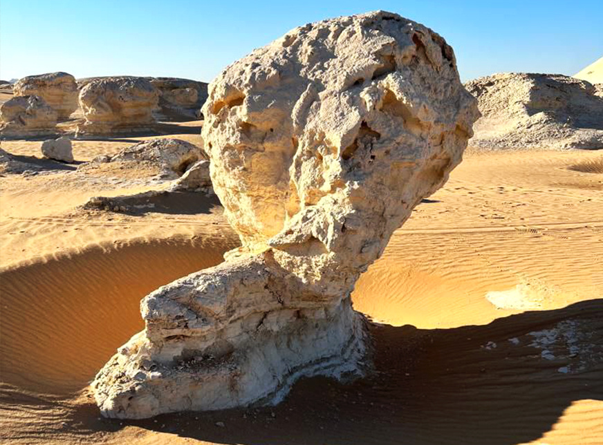Om 09:00 uur Op de terugweg bezoek je Crystal Mountain, Crystal Berg, plaatselijk bekend als Gebel al-Izzaz. Het is meer een kristallen heuvel, rechts te zien, die vaak het juweel van de woestijn wordt genoemd. Het wordt gevormd door de kwartsiet