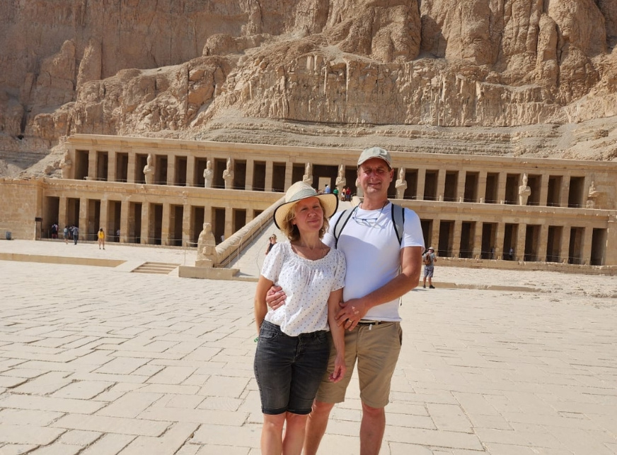 Oprijzend uit de woestijnvlakte in een reeks terrassen. De tempel van Hatsjepsoet fuseert met steile kalksteenkliffen op de oostelijke zijde van de Thebaanse berg alsof de natuur zelf dit buitengewone monument heeft gebouwd.