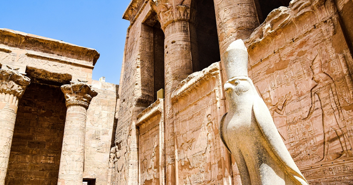 Miejsce kultu w Górnym Egipcie, w którym dominuje duża, dobrze zachowana świątynia poświęcona bogu-jastrzębiowi Horusowi. Budowa ptolemejskiej świątyni Horusa, która została założona na miejscu znacznie starszej świątyni, datowanej na okres między panowaniem Ptolemeusza III (246 r. p.n.e.). Opisy na ścianach obejmują mit o walce Horusa i Seta (prawdopodobnie odgrywany corocznie jako dramat religijny).