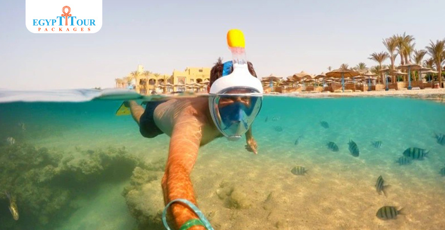 resort has a big swimming pool, beautiful sandy beaches, and all-inclusive food and drinks for you to enjoy. You can also try different water sports like snorkeling and scuba diving to see amazing coral reefs and colorful fish species in the Red Sea.