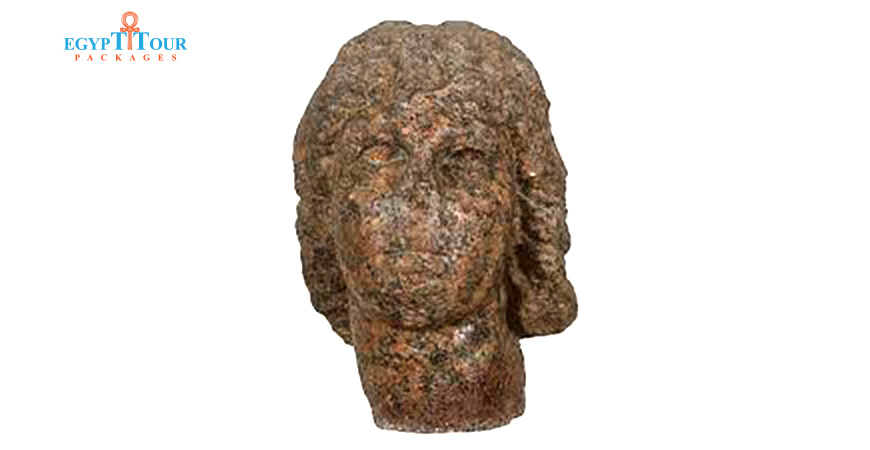 The statue was wearing a double crown and a cobra, and these are Egyptian features. The Greek influence is evident in the royal head scarf, hair, and delicate facial features.