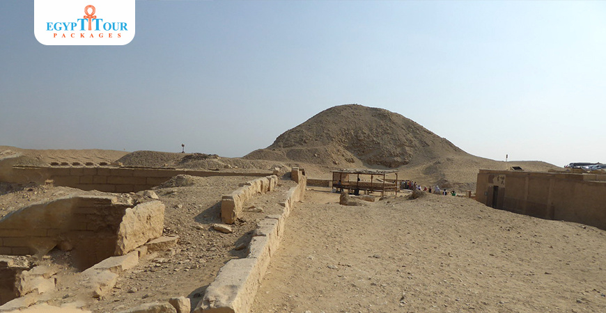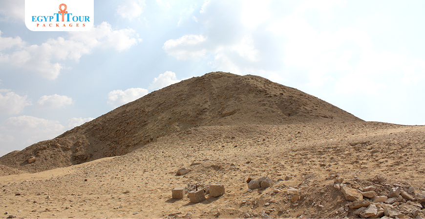 The pyramid is a smooth-sided pyramid that originally measured 78.5 meters on a side and rose to a height of 52.5 meters. However, the pyramid has since been eroded and now resembles a small hill. The pyramid was built with a core of limestone blocks and debris fill, and was originally encased in fine limestone. The casing blocks were removed in antiquity, which caused the core to collapse.The mortuary temple is located on the east side of the pyramid. It was built of limestone and was decorated with reliefs and paintings. The temple was divided into several chambers, including a sanctuary, a pillared hall, and a storage hall. The temple was connected to the pyramid by a causeway.
