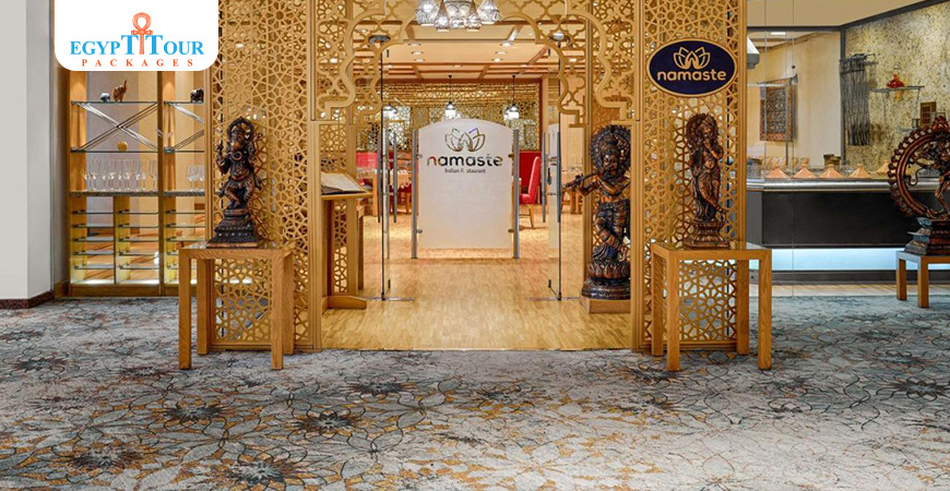 The hotel's architecture, inspired by ancient Egyptian motifs, pays homage to the rich cultural heritage of the land of the pharaohs. The lobby, adorned with intricate columns and ornate chandeliers, transports guests back in time.