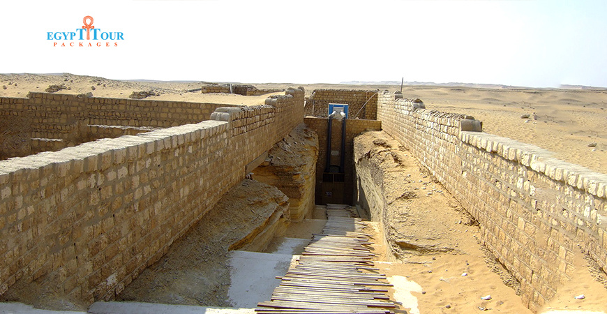 The Serapeum of the Late Period is located in the Saqqara region, located northwest of the Step Pyramid, next to the Tomb of T. The The Serapeum of Saqqara was the ancient Egyptian burial place for sacred bulls of the Apis cult at Memphis was one of the oldest and most important cities in ancient Egypt, located at the entrance to the Nile River Valley near the Giza plateau. Memphis . Serapeum of Saqqara is one of the most important tombs built in Memphis was one of the oldest and most important cities in ancient Egypt, located at the entrance to the Nile River Valley near the Giza plateau. Memphis . The most ancient burials of mummified sacred calves preserved inside coffins date back to the reign of Amenhotep III. In the thirteenth century BC, Ramesses II 's son , Prince Kha-M-Wast dug a tunnel in the mountains, with rooms carved on its sides containing coffins for sargphagos,most of which were made of granite and basalt, ranging from 10 to 80 tons. The Saqqara Serapeum is an underground vault in which calves were buried, fully mummified like kings, and the most luxurious jewelry was placed with them in the burial. The Apis calf has its origins in Memphis was one of the oldest and most important cities in ancient Egypt, located at the entrance to the Nile River Valley near the Giza plateau. Memphis since ancient times, but it is believed that its worship took on its own rituals since the reign of Amenhotep I and it became officially a deity. A sacred sanctuary was erected in the courtyard of this building in the thirtieth year of the reign of Ramesses II (19th Dynasty) to offer worship to the deceased Apis calf. It was called “House-Osiris Apis,” which was transformed in the Greek language into the name Po Serapis. In the time of “Ptolemy I,” a sanctuary was added to the deity. Serapis, whose cult worked to unite the Greeks and Egyptians, and was served by volunteer monks.Psamtik I built a second tunnel,which the Ptolemies later used.There was a road extending from the Temple of the Mummification of the Sacred Calf in Memphis was one of the oldest and most important cities in ancient Egypt, located at the entrance to the Nile River Valley near the Giza plateau. Memphis and extending west, passing through the cemetery of Marruca and reaching the entrance to the Serapeum in Saqqara. The road was surrounded by statues of the the Great Sphinx is one of the world's largest monuments. It is also one of the most recognizable relics of the ancient Egyptians. Sphinx . It is likely that their number was 600 statues of the the Great Sphinx is one of the world's largest monuments. It is also one of the most recognizable relics of the ancient Egyptians. Sphinx . It is likely the work of King Takhtenpo I.