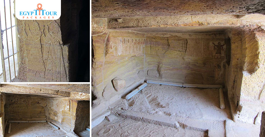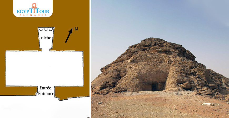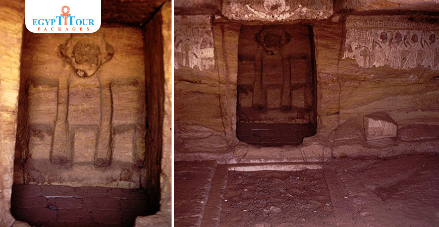 1-Original Location: The tomb was located on the site of Aniba and excavated into the south side of a sandstone hill. It was reached by a short ramp that preceded a court.